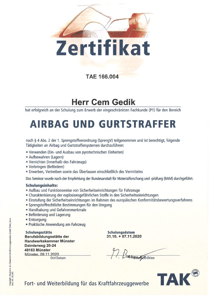 Ich kann Ihnen diesen SV wärmstens ans Herz legen, man bekommt alles aus einer Hand, Gutachten Reperatur, Korrespondenz mit Anwalt und Versicherung. Herr Gedik regelt einfach alles rund um Ihren Schaden. Einfach super Leistung, immer wieder.