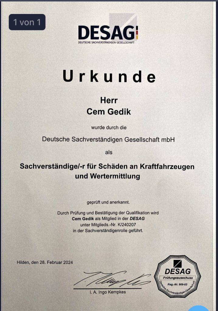 Objektiv. Schnell. Zuverlässig. Nach einem Unfall brauchen Sie Klarheit und professionelle Unterstützung. Als unabhängiger und DESAG-zertifizierter KFZ-Sachverständiger steht Ihnen Cem Gedik in Stadtlohn mit Expertise, modernster Technik und langjähriger Erfahrung zur Seite.